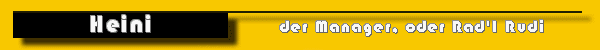 Heini Weimann: Heini ist unser Manager, Fahrer, Organisator und Sanitäter. Dank seines Einsatzes sind unsere Touren immer perfekt. Hier seine Details: Name: Heinrich Weimann Geburtsdatum: 24.12.1939 Beruf: verkauft Küchen Steht auf....: Hotels mit Sauna und gutem Essen und Trinken (haben wir leider nur sehr selten! ;-) ) Und hasst: ..... Sein absolutes Bikerparadies: ...zum nächsten Biergarten *g* Musik: Volksmusik. Sein Bike: der "Adler" Sonstiges: Vater vom Jürgen und Opa vom Andi! <<Claudia ----- Rudl ----- Andi>> | ||||||||||||||||||||||||||||||||||||||||||||||||||||||||||||||||